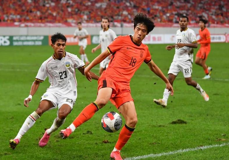 中国队4-3-3阵型进攻,安东尼奥将向余望放在中锋位置,拜合拉木、王钰栋打两翼。这是不了解球员特点,也低估了东帝汶球员的身体素质和对抗能力。向余望身体对抗、高空球能力都很一般,他适合打中锋吗?他更适合打影锋,拜合拉木放在中路更适合,向余望发挥背身拿球特点。
