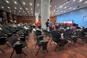 赛前报道本场比赛的文字记者共251人,摄影记者共155人,好像临时还有增加。但是赛后的发布会,记者少了很多人。
