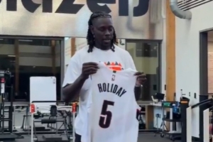 体育资讯8月1日讯 今天,开拓者官方晒出新援霍勒迪手持球衣的视频。
